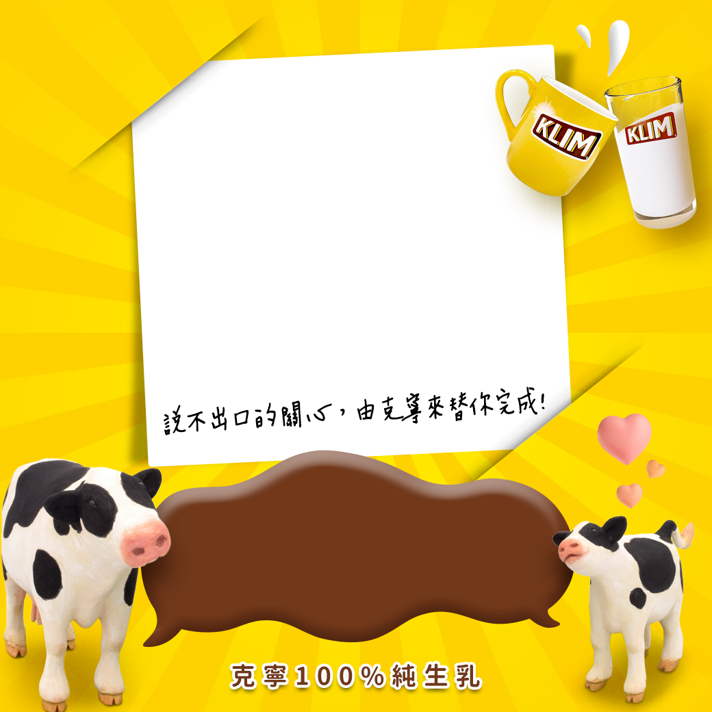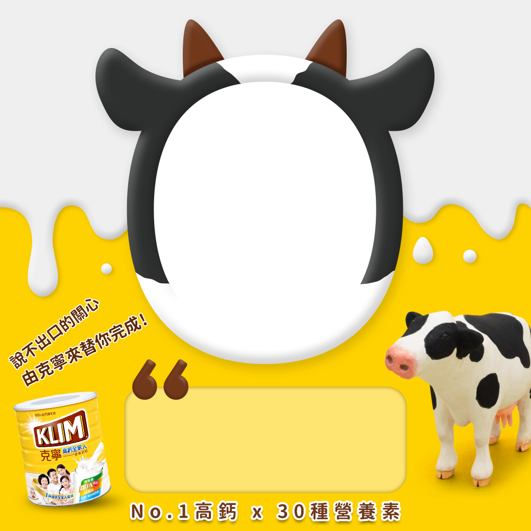 - 參加者每上傳一張符合指定規則「內含克寧純生乳/克寧100%紐西蘭/克寧全家人奶粉系列產品+一杯牛奶或用其所製成的料理成品」的照片,並分享給好友祝福卡,就具備抽獎資格,系統會自動登入抽獎資訊。